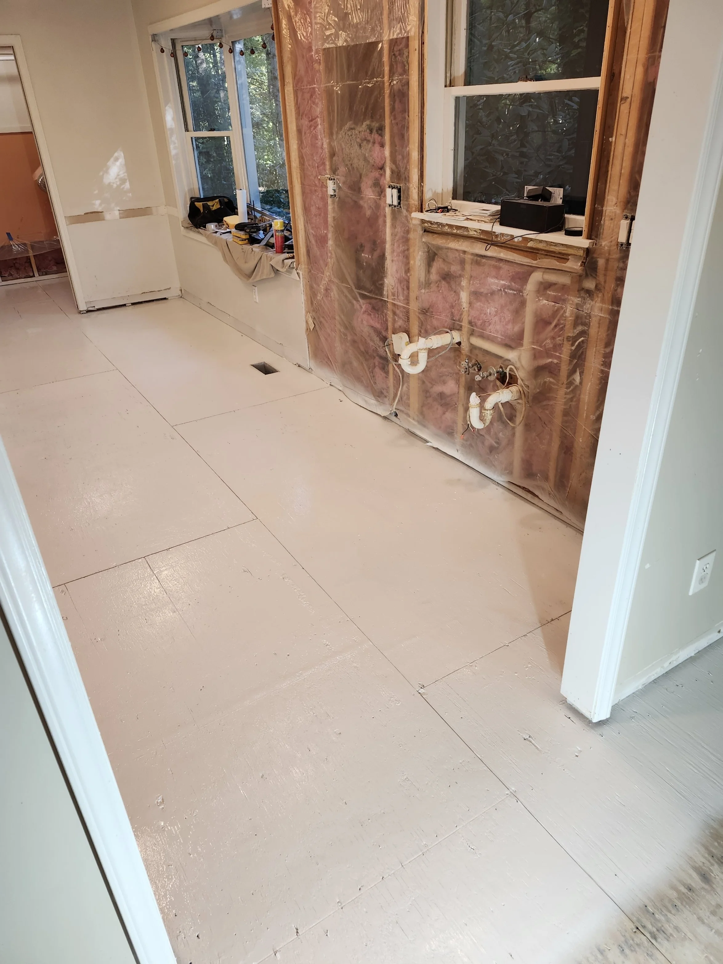 Demo and clean up begin on the kitchen, living room, dining room and bedroom